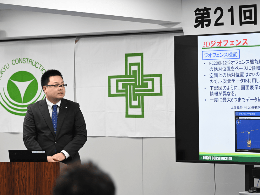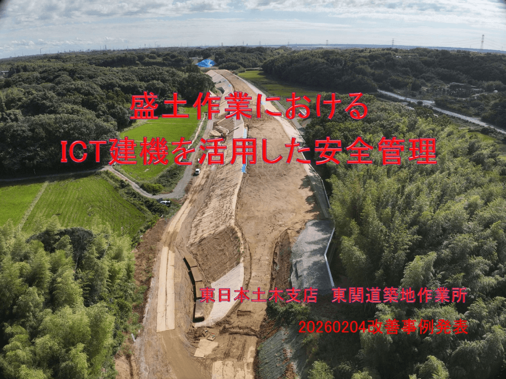 当社からは、東関道築地(とうかんどうついじ)作業所を担当した上田悠貴(うえだゆうき)所長が参加し、「盛土作業におけるICT建機を活用した安全管理」をテーマに発表しました。